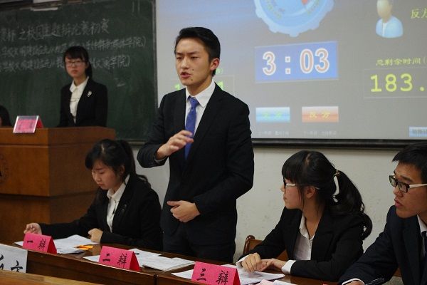 凉风习习爽籁发,初冬晓晨沁人心。在本次“文采班澜知识竞赛”初赛中,所有参赛的十八支队伍被分到两个竞答场地,队伍间两两进行角逐。每个场地的竞答都在主持人的引导下,按着所定流程有条不紊地进行。竞赛题目分为必答题和选答题。这是一次团队之间的较量,参赛队员并不是孤军奋战,而是小组成员在各自擅长的领域各施才华。参赛队伍在队长的带领下,队员一同出谋划策提意见,齐心协力共答题。在一号竞答场中,表现最为出色的是牛轶所在队伍,他们可谓是逢题必答。其答题的正确率和答题速度也让在场观众颇为赞叹,感受到他们的才学多识。而在二号场地中,虽然孙源所在队伍在必答题环节中发挥并不出色,但是他们在选答题的环节中却连战连捷,最终比分反超了对手。