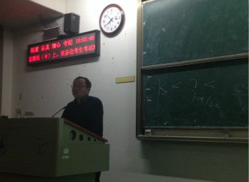 说法,指出目前许多学生喜欢占后排上课的不良现象,鼓励大家争坐前排,并说学生积极主动的求学态度才是取得成功的内因,而教师的授课则是受之影响的外因。争坐前排,不仅反映着学生态度上的端正,更体现着对自身能力的自信,这些都是日后竞争中脱颖而出的必备素质。接着,唐教授摘取水木清华的一段话来勉励大家:如果将英语的26个字母由A到Z分别编上1到26的分数,那么你的知识(KNOWLEDGE)只能得到96分,努力工作(HARDWORK)也只能得到98分,只有态度(ATTITUDE)才是左右生命全部的100分。