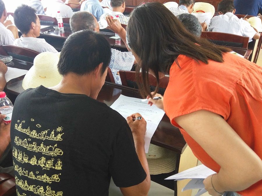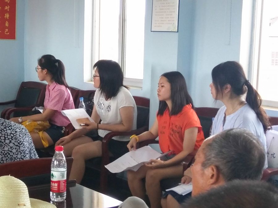 随后,分队来到了王州村村政府会议室,听取观摩会后的总结会议。总结会议的后半段,在进行了简短的说明后,分队成员向与会人员分发了调查问卷,希望通过问卷的形式了解乌林镇及周边地区旅游休闲农业的发展状况,探究发展模式。被调查人员积极配合分队的工作,认真阅读了问卷内容,并进行了填写。