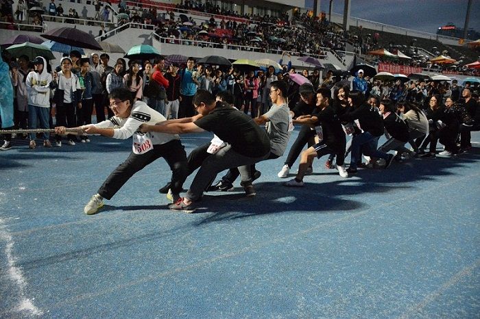 在八字跳绳,翻树叶,穿越,拔河等集体项目中,同学们的团结协作是91网站 的凝聚力的最好展现,即使是在赛前的最后一刻仍在积极准备训练。拔河项目上我们遇上的第一个对手即是传统强队法91网站 队,而同学们在强大的对手面前毫不怯战,精神可嘉,虽败犹荣。