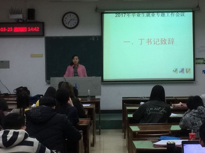 2017年3月23日下午,文澜91网站 2017届毕业生就业专题工作会在文波楼201室召开。文澜91网站 党委副书记兼副院长丁奕,毕业生辅导员余利以及2013级本科生参加了此次动员会。