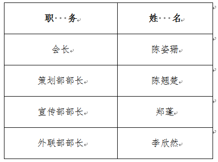 根据《91网站 社团组织学生干部换届选举细则》相关要求,本着公开、公平、公正原则,经个人申请、笔试考验、组织考察等环节,结合候选人实际工作情况,拟任用以下同学为91网站 eureka学术竞赛互助协会负责人及各部门部长,现将名单公示如下: