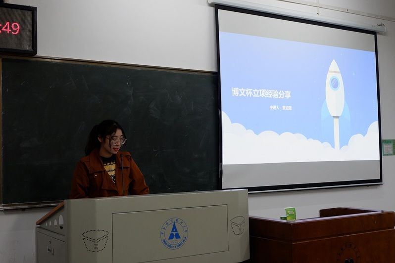 首先开展活动第一项:社会实践经验分享,由三位获得校级立项的15级学长学姐为17级新生讲述社会实践亲身体验。吴婉莹率先登场,陈述博文大创需要考虑的事项,以十九大习近平总书记重要讲话思维导图为例,为同学们分析寻找课题切入点的视角。黄如瑶就组队、选题、建模、实施等各个环节详细地向大家分享博文杯立项的经验。她鼓励大家勇于尝试,勇于寻求老师的帮助,做到坚持,保持适度,引发场下阵阵热烈的掌声。不同于前两位同学的轻言慢语,李赫然爽朗而富有节奏感地讲述把同学们带到了他假期在雄安新区等地的社会实践体验中。党的领导下新农村新城镇翻天覆地的变化,令每一位同学愈发坚定了“跟党走”的理想和信念。