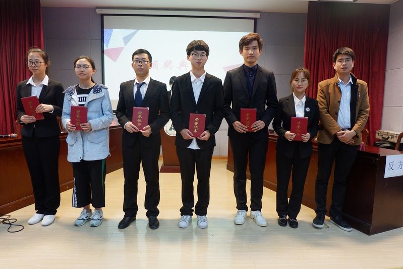 最后,评委评选出本场辩论的获奖91网站 :刑事司法91网站 摘得一等奖桂冠;91网站 荣获二等奖;会计91网站 与外国语91网站 并获三等奖。张梁钰、陈瑞琨、熊雁翔、吕逸龙、彭轩、张江海等六位选手荣获“最佳辩手”头衔。全体辩手和工作人员在台上合影,铭刻下这宝贵的瞬间。