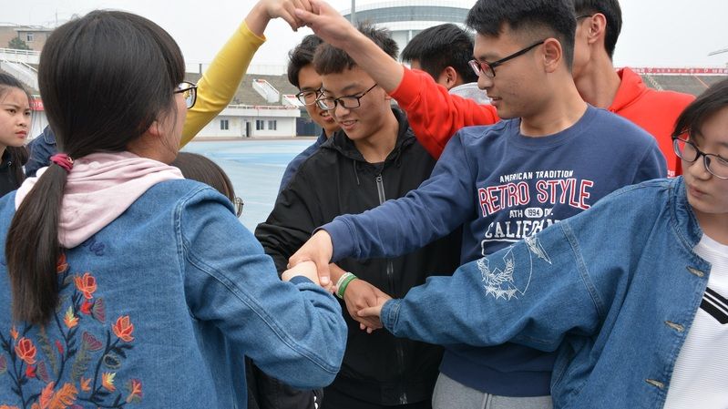 “千千心结”项目中每只队伍站成一个向心圆,彼此手臂交错握住结成一个手网,要求参赛队伍在不松开手的情况下解开手网。活动过程中,同学们纷纷出谋划策,指挥团队成员转身,踏出“手环”,在大家的默契配合下,原先错综复杂的乱网一步步被解开,完成挑战的同学也露出了发自内心的笑容。“刚开始挺担心解不开的,可大家都在想办法,出主意,虽然中间遇到了一点困难,但是在大家的共同努力下,我们还是成功了,团队协作的力量真的很强大。”参加活动的胡锦雯同学表示。