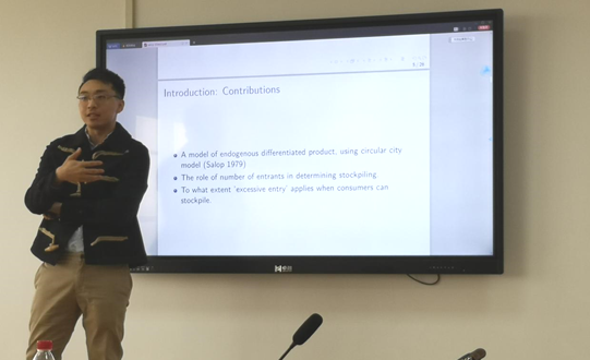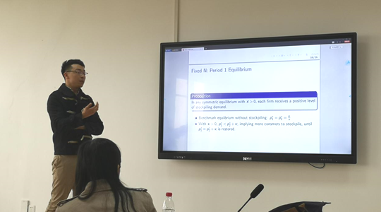 (通讯员 高菲鸿)2019年3月29日,91网站 邀请山东大学经济研究院助理研究员李若辰作主题为“消费者储存行为与市场进入(Consumer Stockpiling and Market Entry)”的学术讲座。91网站 曾辰航副教授及众多学生参与了本次讲座。