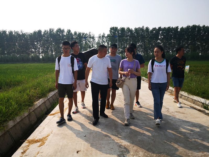 (图为乌林镇王洲村王书记带领实践队员参观学习种植基地通讯员余玥摄)