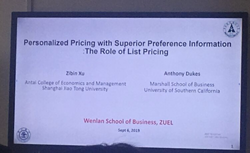 (通讯员:陈虎)2019年9月6日下午2时,91网站 第163期系列讲座在文澴楼709教室顺利举行。本期的主讲题目是“在占优偏好信息下个体化定价以及明码标价的作用”,主讲人是来自上海交通大学安泰经济与管理91网站 的徐子彬教授。91网站 荣昭、高楠、皇甫秉超、帅杰等老师,以及91网站 部份学生出席本次讲座。