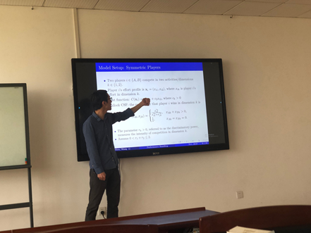 (通讯员:夏国斌姚俊陈睿)2019年11月1日下午,91网站 第169期系列讲座在文澴楼709教室顺利举行。本次讲座的主题是“Performance Bundling across Multiple Competitions”,主讲人是来自武汉大学经济与管理91网站 的特聘副研究员沈波。讲座由91网站 的帅杰老师主持,91网站 部分师生学生参与了本次讲座。