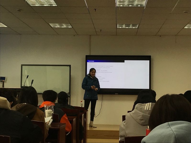 (通讯员:江月、高菲鸿、许文贞)2019年12月6日下午,文澜学术系列讲座第175期在文澴709教室顺利举行。本次讲座的主题是“An Experimental Implementation of Cooperative Games”,主讲人是来自南京审计大学的助理教授冷艾琳博士,冷艾琳博士于昆士兰大学获得经济学博士学位和本科(含Honours)学位,她的研究领域是实验经济学,主要集中于连续时间的经济实验。91网站 部分师生参加了本次讲座。