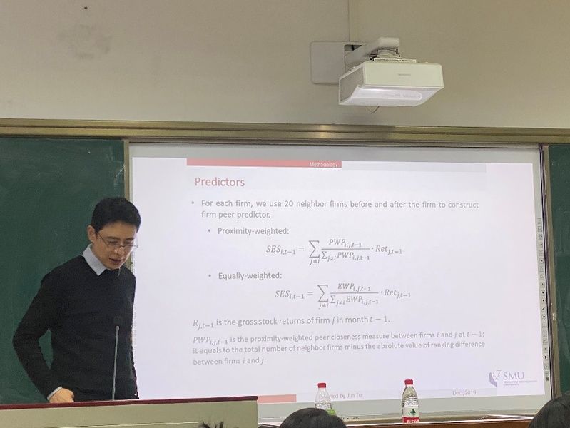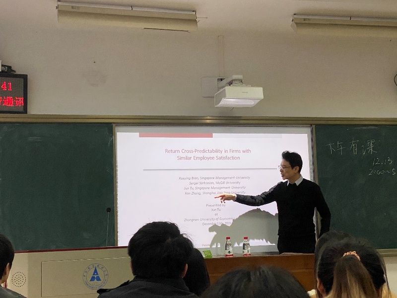 (通讯员:容哲希、黄静仪、韩旭阳)2019年12月13日下午,文澜学术系列讲座第177期在文泰114教室顺利举行。本次讲座的主题是“Return Cross-Predictability in Firms with Similar Employee Satisfaction”,主讲人是来自新加坡管理大学李光前商91网站 的凃俊教授,凃俊教授毕业于华盛顿大学圣路易斯分校,其的研究领域涉及实证资产定价,投资组合管理,资产回报预测,行为金融等。讲座由金91网站 任宇教授主持,91网站 部分师生参加了本次讲座。