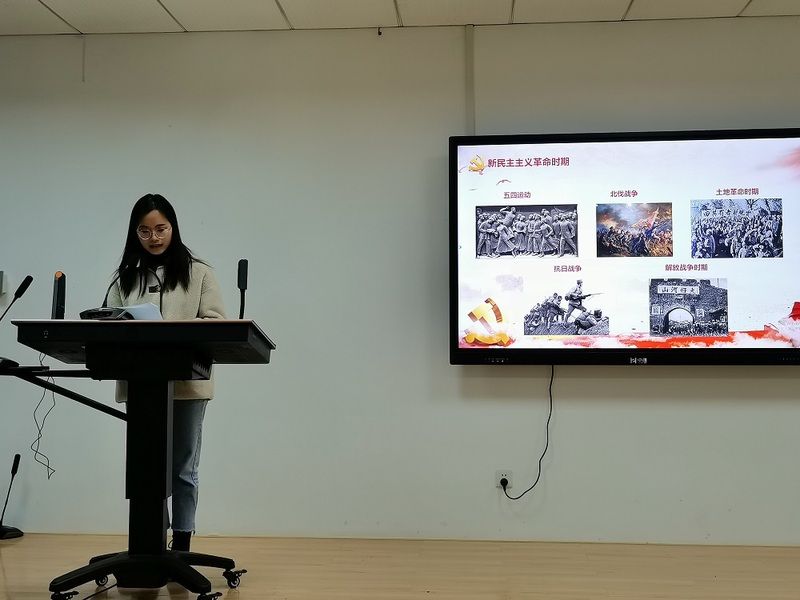 会议第三项,吕樊丽同学领学习近平总书记关于开展党史学习教育的文件精神。吕樊丽同学首先回顾了近百年党和人民的奋斗历程,从中国共产党的成立,经过新民主主义革命时期,到现在人民拥有美好生活。她随后提到,党的百年历史是矢志践行初心革命的历史,作为新时代的学生,应当不忘初心砥砺前行,学习和总结党的历史,传承和发扬党的精神。开展党史学习教育,是坚定信仰信念、推进中华民族伟大复兴历史伟业的必然要求。