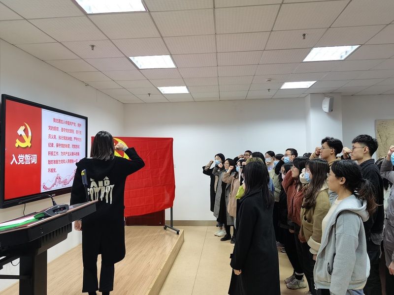 会议第一项,重温入党誓词,由组织委员班铭媛同学带领全体学生党员进行宣誓。