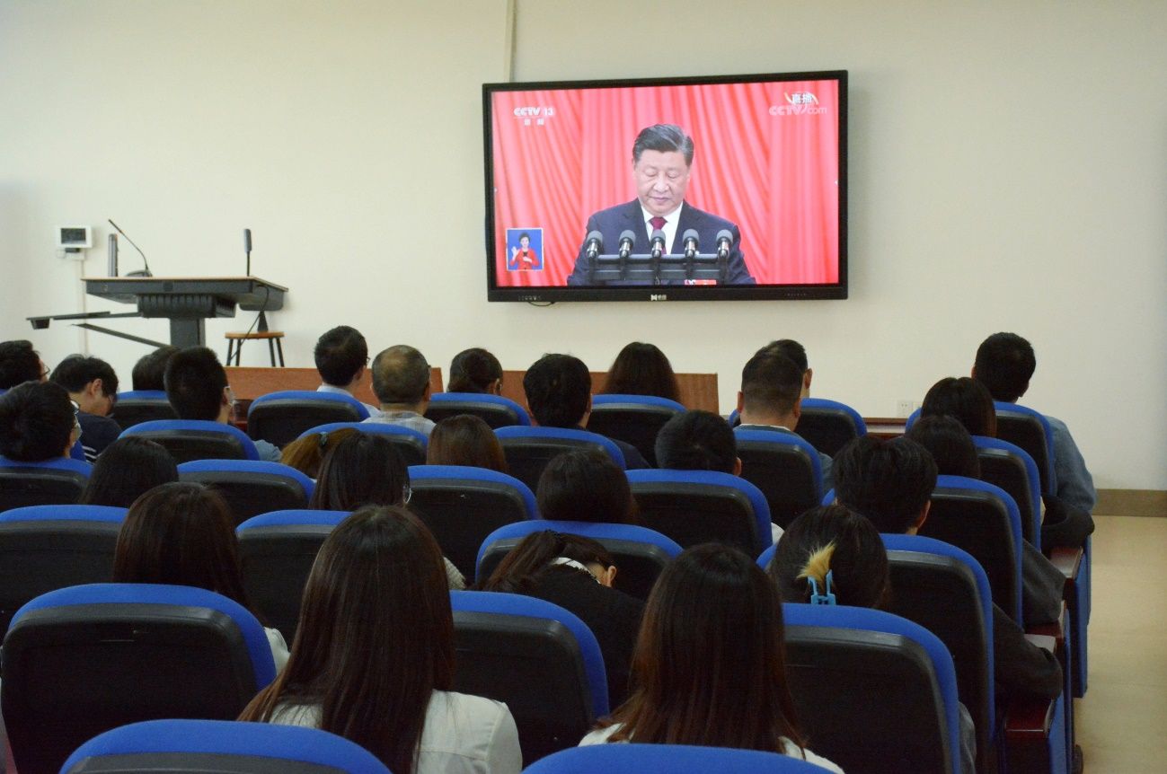 随后,党员师生们认真地聆听习近平总书记代表中国共产党第十九届中央委员会向大会所作的报告,并认真学习和记录报告的有关内容。