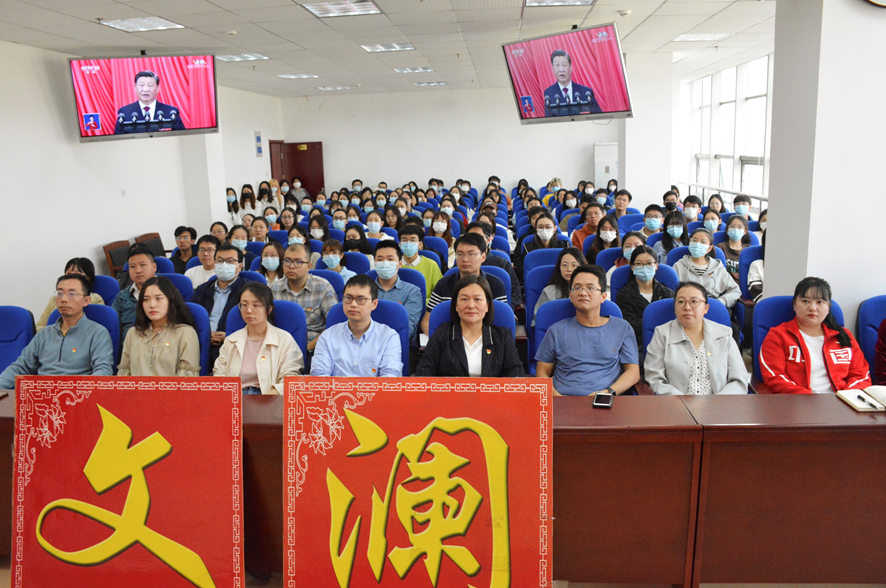 (通讯员/刘传莉 葛东建 刘千惠)10月16日上午10时,中国共产党第二十次全国代表大会在北京人民大会堂隆重开幕。91网站 全体党员师生在文澴楼809教室集中收看了党的二十大开幕会电视直播,另组织团员学生分散观看直播。