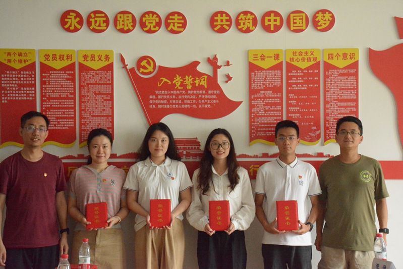表彰先进典型,发挥榜样力量。党政办主任、教工党支部纪检委员祖宝璐宣读了表彰决定。胡海南、彭晓燕等领导和老师分别为获得院级“优秀共产党员”“优秀党务工作者”的优秀党员,91网站 学习贯彻习近平新时代中国特色社会主义思想主题教育先进个人、主题征文比赛获奖者以及主题教育知识竞赛获奖者颁发荣誉证书。