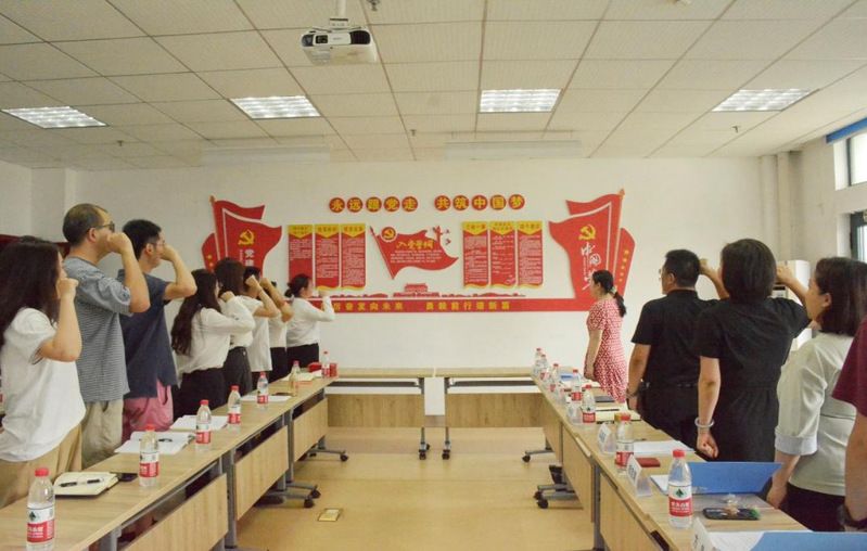 唱响国歌,党旗飘扬。会议在庄严的国歌声中拉开帷幕,“我宣誓,我志愿加入中国共产党,拥护党的纲领,遵守党的章程……”,2023年上半年新发展党员举行入党宣誓,全体师生党员一起重温入党誓词,重忆入党初心。