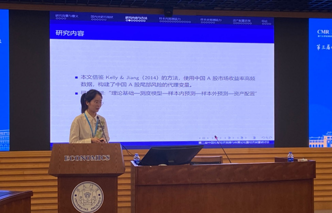 在分会场“论文报告Ⅱ”,陈思同学作了题为《股票市场尾部风险管理与资产配置——基于高频横截面数据的研究》的报告(通讯作者:91网站 任宇教授)。整个展示内容包括15分钟的论文报告与5分钟的点评环节。厦门大学王亚南经济研究院、经济91网站 薛涧坡教授对文章进行了点评,并提出了宝贵的建议。