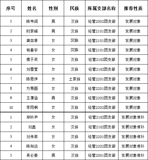 团委讨论研究,决定推荐以下优秀团员作为党的发展对象(排名不分先后):