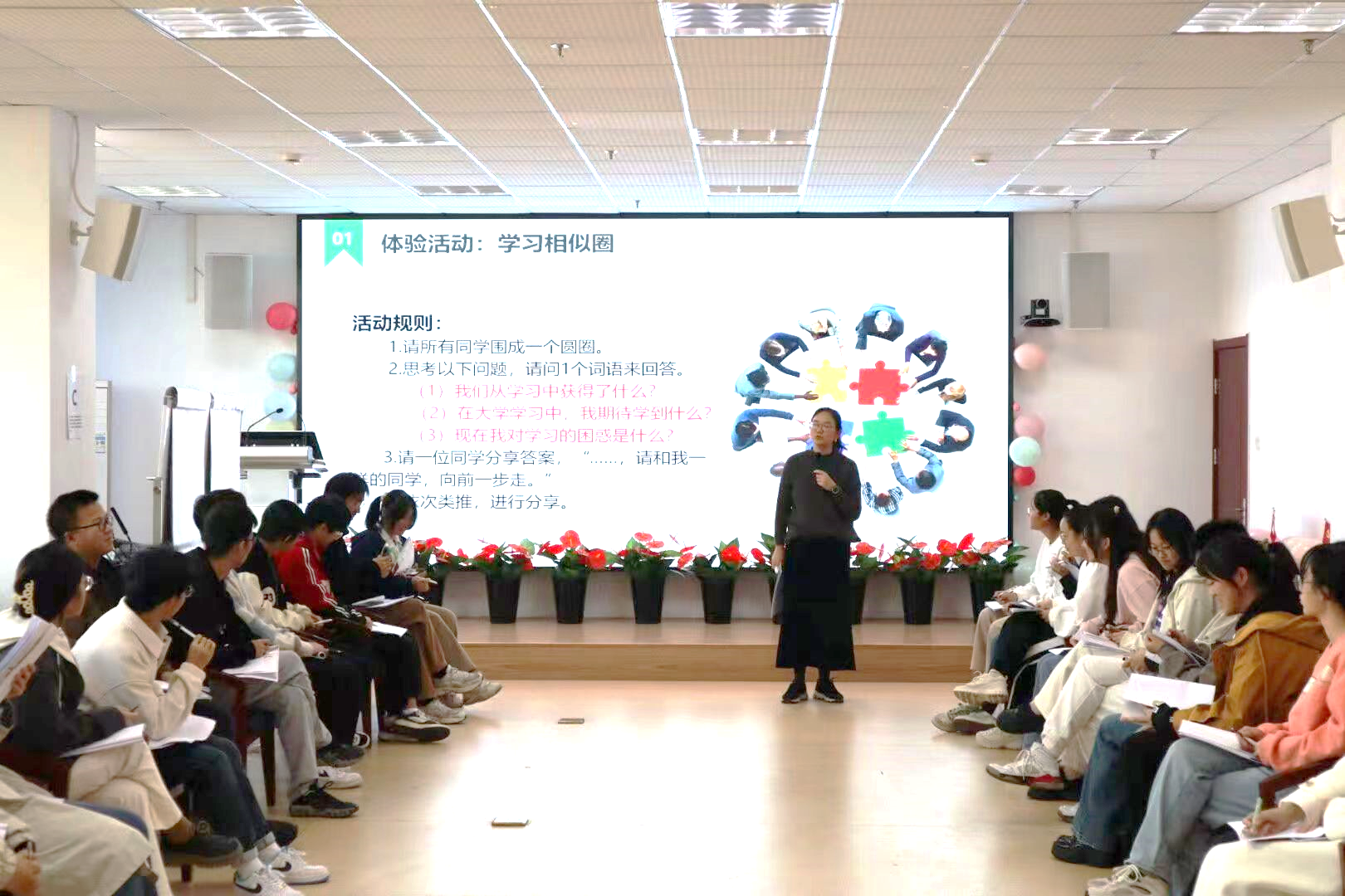 11月19日下午,第四期活动开展,由华中师范大学余璇老师负责带领学习效能与情绪管理这一主题。在学习效能环节,余老师带同学们进行“学习相似圈”这一活动,引导同学们画出自己的“优势智力八方”。随后,同学们绘制自己的彩绘曼陀罗并相互分享,集思广益,极大地丰富了大家的学习百宝箱。在情绪管理环节,余老师以温暖的《风吹麦浪》引入,让同学们感受麦子的生长,放松身心。接着,同学们制作了属于自己的情绪奶茶,并依次分享了本周的心情。在余老师对情绪语言等知识的讲解下,同学们对如何合理表达与掌控情绪有了更深入的理解并且绘制了情绪九宫格。