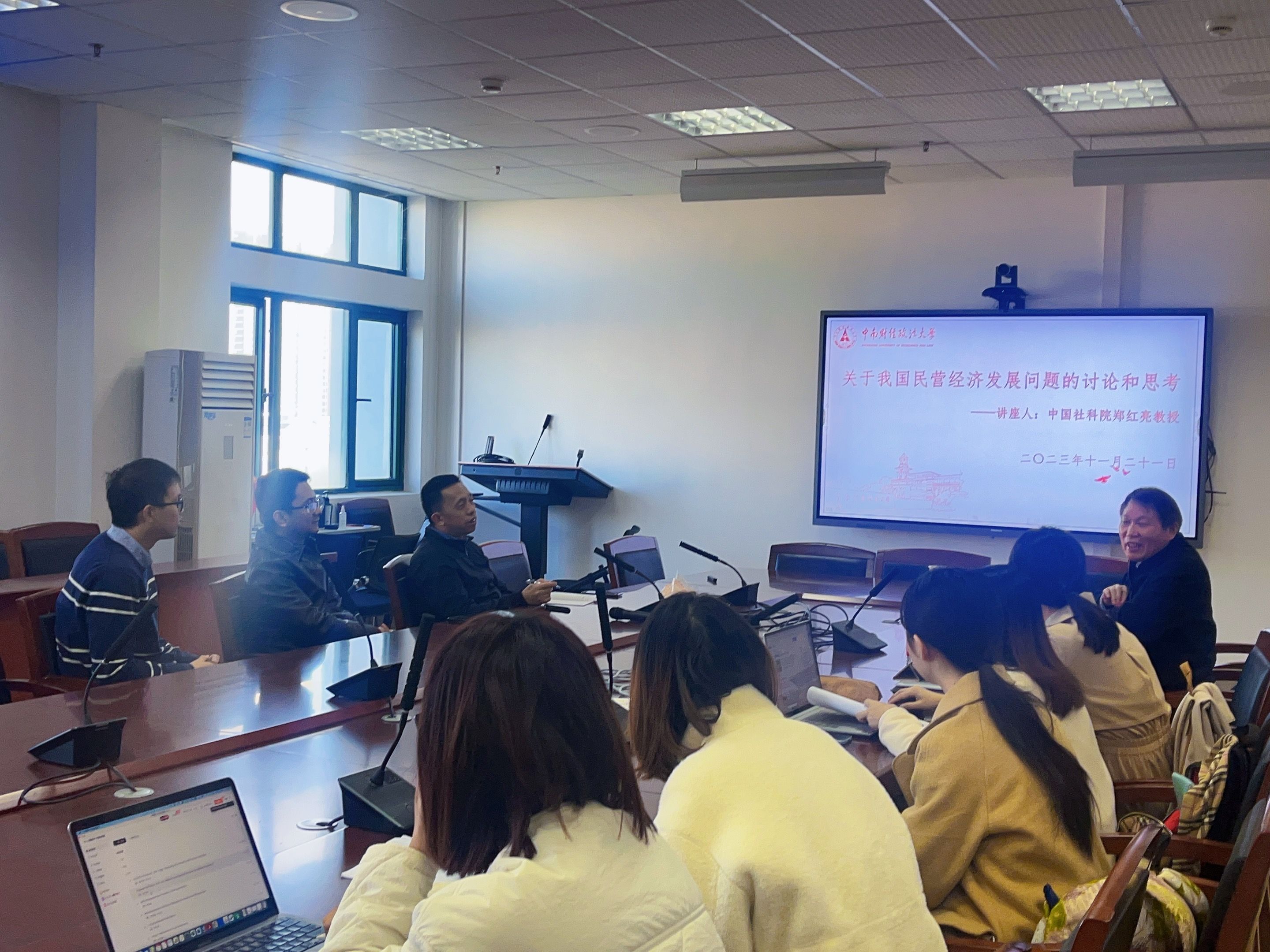 2023年11月21日,中国社会科91网站 经济所郑红亮教授受邀来91网站 开展学术讲座。本次讲座主题为“关于我国民营经济发展的讨论和思考”,讲座由龚强院长和帅杰老师共同主持,91网站 众多师生听取了本次讲座。