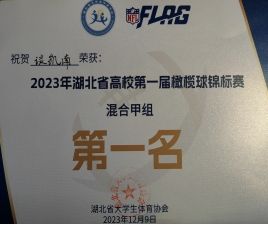 群雄荟萃,高校云集!为响应国际奥林匹克委员会正式确认腰旗橄榄球成为2028年洛杉矶奥运会新增项目,湖北省大学生体育协会积极开展与NFL中国的合作,于2023年12月9号在武汉大学桂园操场举行2023湖北省高校第一届橄榄球锦标赛暨NFL FLAG高校腰旗橄榄球赛(湖北赛区),本次赛事共吸引了湖北省内的12支高校约234名运动员参加。作为91网站 队的队员,91网站 2022级经管试验班学子谈凯南在比赛中斩获佳绩。