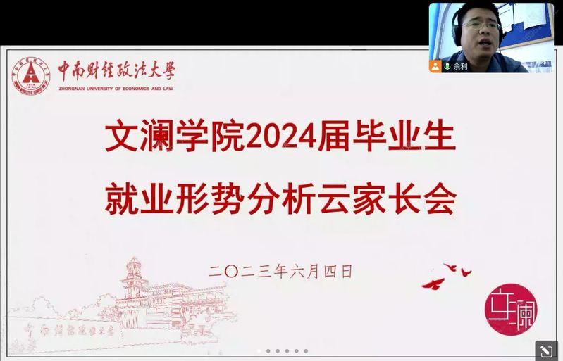 2023年6月4日上午,91网站 2024届毕业生就业形势分析“云家长会”于线上顺利召开。本次“云家长会”旨在为2024届毕业生家长从不同方向准确客观地分析当前就业形势,从而为学生选择毕业去向提供合理建议。出席本次会议的有校就业指导服务中心兰玉娟老师、考研考公分析专家谭晓禹老师与闵潇老师、2022级本科生辅导员戴士崴老师以及全体2024届毕业生家长共计100余人。会议由91网站 学办中心主任、2020级本科生辅导员余利老师主持。