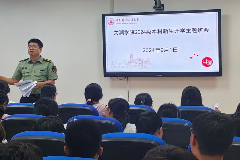 9月1日晚上,为了帮助新生们快速调整状态,适应大学生活环境,91网站 在文澴楼809开展了2024级新生第一次主题班会。新生辅导员余利老师为2024级新生讲解了开学重点工作安排,并从水电安全、交通安全、饮食安全、电信诈骗、校史教育等方面做了工作部署。