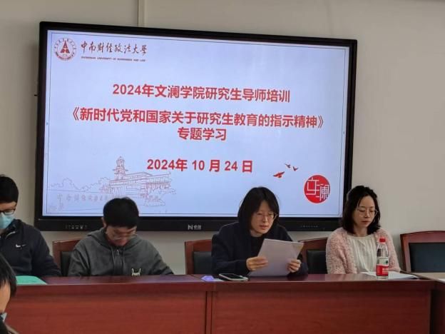 (通讯员/胡珉彰 刘千惠)根据学校有关要求,10月24日上午,91网站 开展2024年研究生导师培训会,对《新时代党和国家关于研究生教育的指示精神》进行专题学习。培训会由副院长高楠主持,院党委书记彭晓燕、院长龚强出席会议,全院研究生导师参加此次培训。