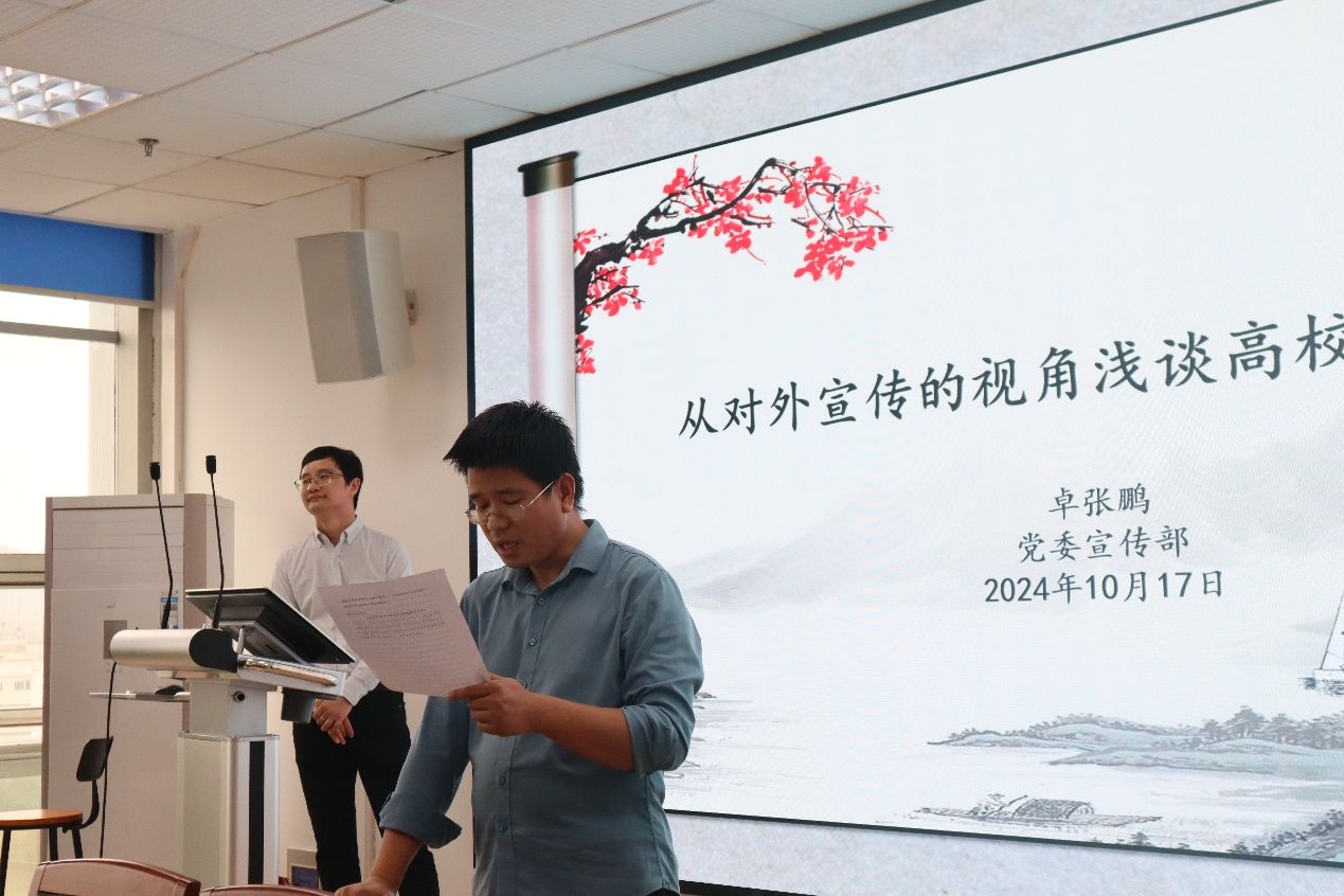 (通讯员/董珈彤)2024年10月17日下午两点,91网站 “一融双高”宣传工作专题培训会在文澴楼709会议室举行。本次培训聚焦91网站 新闻宣传策略与技巧,特邀校党委宣传部外宣办主任卓张鹏老师授课,91网站 教师党支部、行政党支部、学生党支部委员以及91网站 教师代表参加学习。培训会由学办主任余利老师主持。
