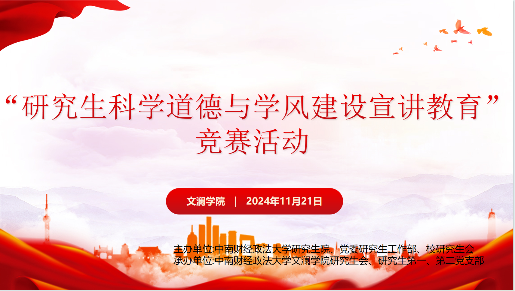(通讯员 刘千惠 凌思钰 刘盛乔)为深入学习和贯彻习近平新时代中国特色社会主义思想及党的二十大、二十届二中、三中全会精神,全面执行习近平总书记关于弘扬科学家精神和加强学风建设的重要指示,进一步落实《2024年全国科学道德和学风建设宣讲教育工作要点》的通知,引导研究生树立正确的学习目标和学术道德,11月21日上午,由91网站 研究生院、党委研究生工作部和校研究生会主办,91网站 研究生会承办的“科学道德和学风建设宣讲教育”活动在文澴楼705室举行。