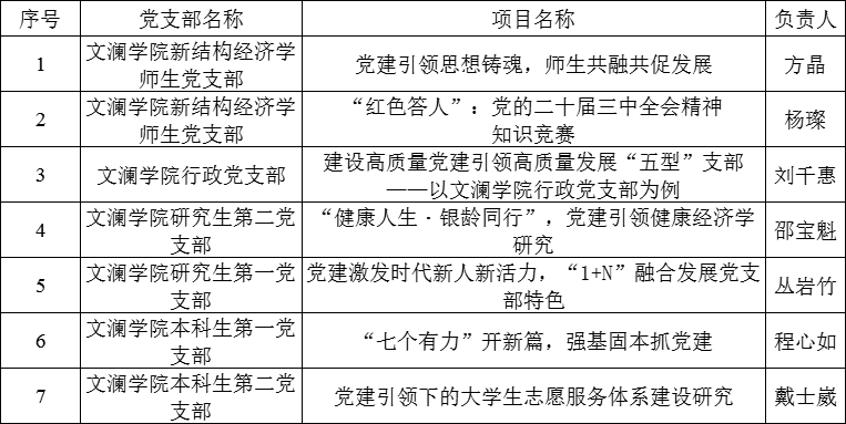 党委2025学年党支部建设“揭榜挂帅”项目立项结果公布如下: