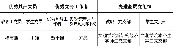 根据学校《中共91网站 委员会关于组织开展 2025 年优秀共产党员、优秀党务工作者、 先进基层党组织等评选表彰工作的通知》工作安排,91网站 于近期启动相关工作。经党员和党支部自愿申报、资格审查、91网站 党委会审议,决定推荐祖宝璐等个人和集体参与校级评选。具体名单如下: