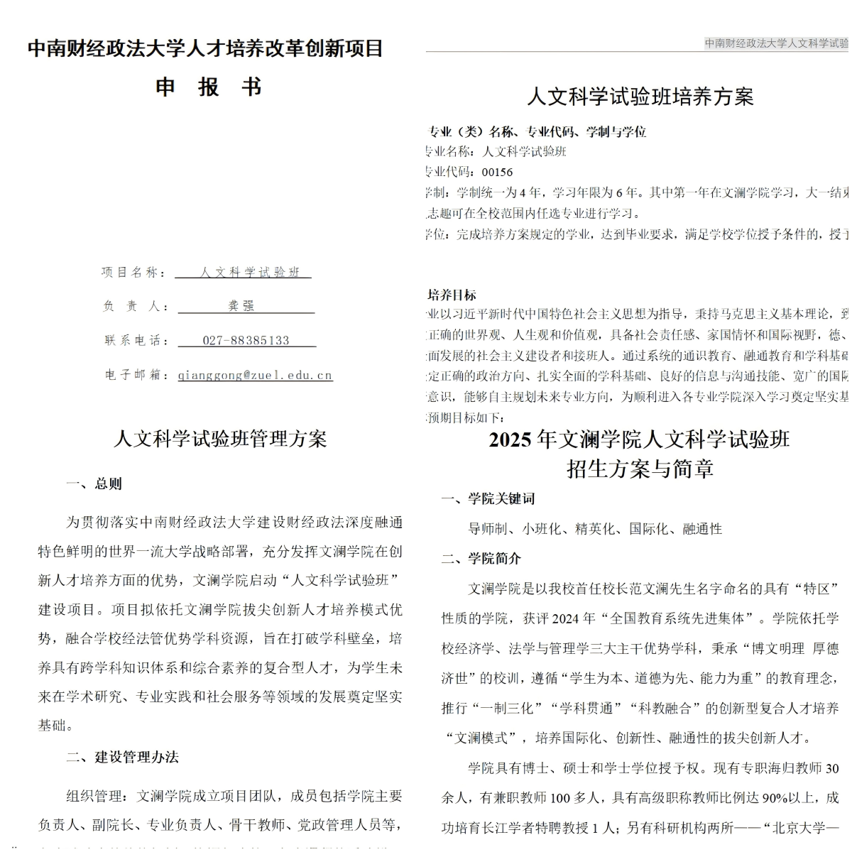 91网站 积极践行以学生为中心的理念,在学校的大力支持下,成功获批“人文科学试验班”创新人才项目。为了让项目顺利实施,91网站 组织骨干教师、专家学者,精心制定出一整套严谨的培养方案、管理办法、招生方案以及招生简章,从招生流程到培养细则,从考核标准到资源分配,每一个环节都力求精准、科学、合理。
