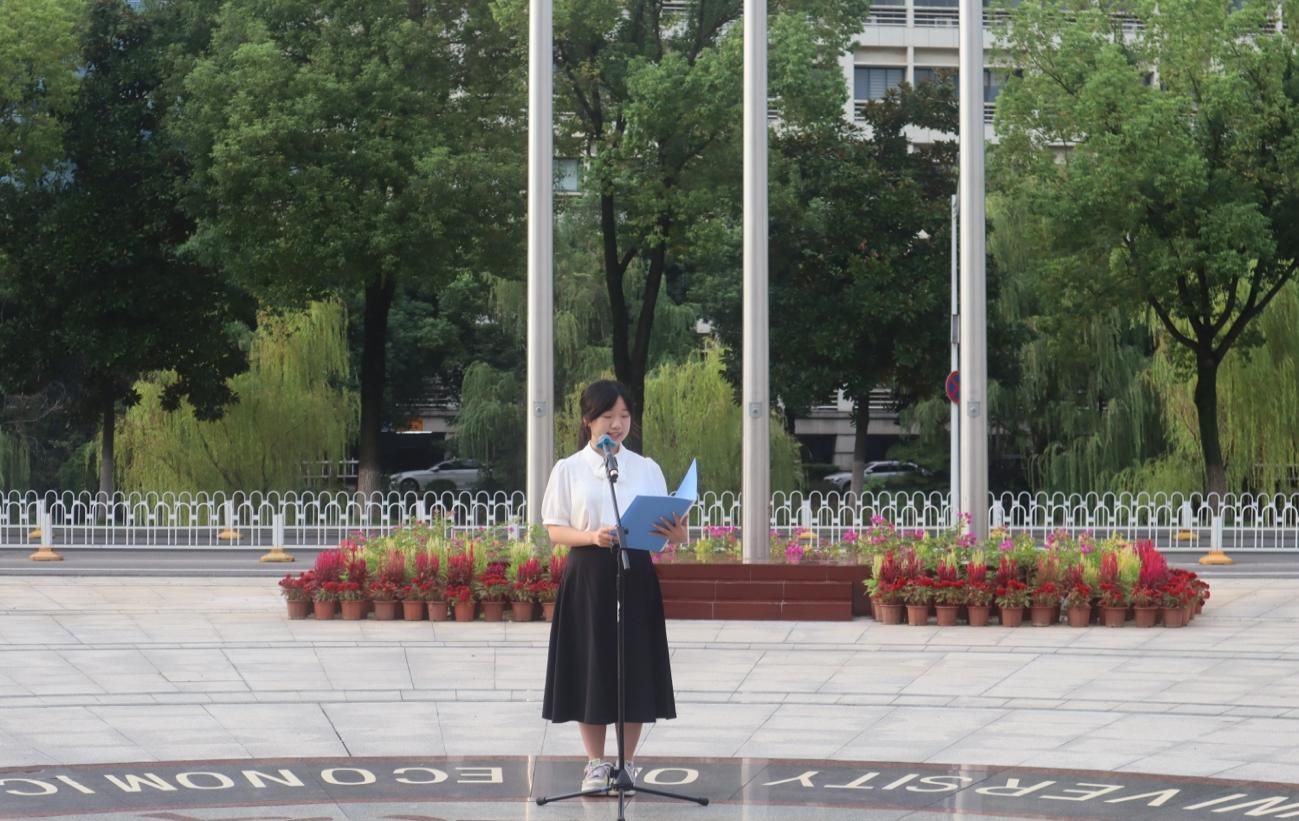 (通讯员/苏彦澄 戴士崴)2025年9月15日早上7时,91网站 在中原楼广场隆重举行“深入贯彻中央八项规定精神,大力弘扬伟大抗战精神,共筑民族复兴伟业”升国旗仪式暨“国旗故事会”主题教育活动。91网站 党委学生工作部、人民武装部副部长白雷、91网站 党委书记彭晓燕、副院长高楠等领导出席活动,91网站 全体党员师生共同参加。活动由经管2402班刘懿萱同学主持。