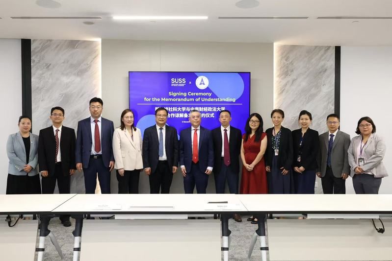 访问新加坡社科大学期间,侯振发与常务副校长Robbie Goh教授共同签署合作备忘录。两校将在学术研究、课程共建、师生互访等领域展开全面合作,并积极推动共建“AI+社科”交叉学科联合研究平台,实现数字技术与经管法学科的深度融合。