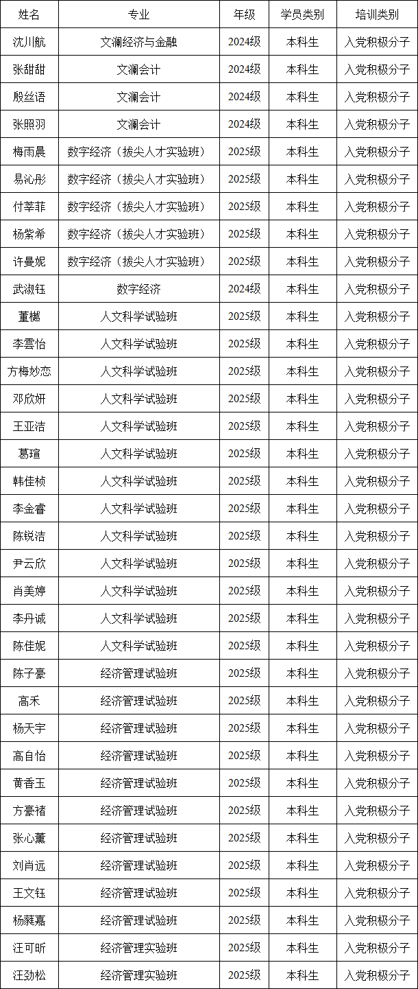 各团支部于2026年4月8日召开会议讨论通过,确定沈川航等同志为入党积极分子,予以公示。现对沈川航等同学在理想信念、政治立场、思想作风、工作、学习、群众观念及廉洁自律等方面接受广大党员、群众监督。